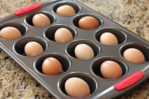 Preheat your oven to 325. If you know your oven runs cooler, try out a higher temp like 350. Bake for 30 mins. Remove & put them in ice water for about 10 mins!